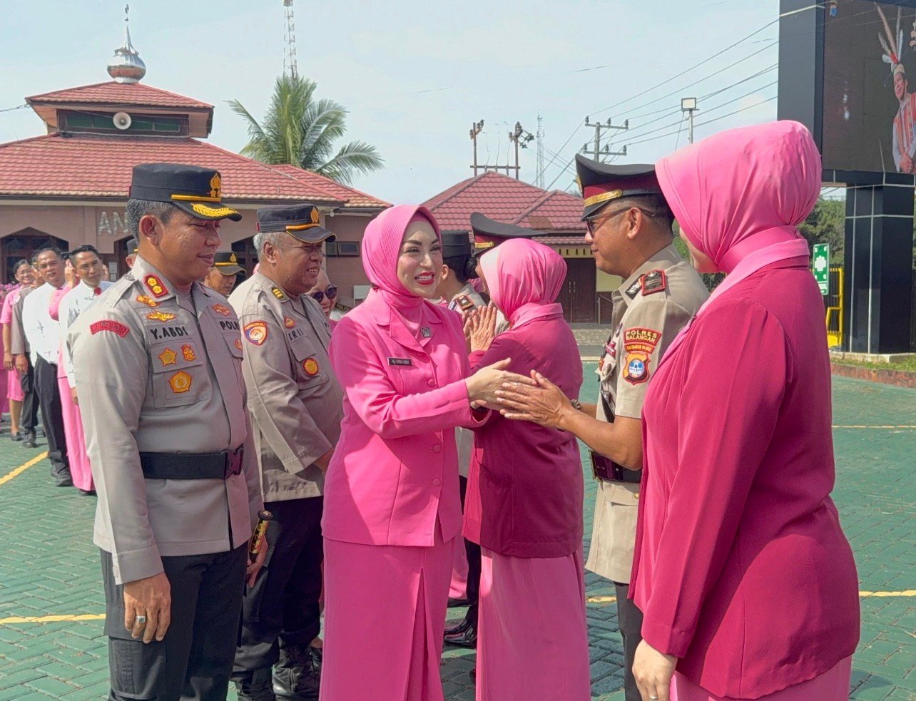 Kasat Lantas Polres Balangan baru saat bersalaman dengan Kapolres Balangan beserta isteri usai Sertijab di Mapolres setempat, Minggu (19/10/2025). KATAKUNCI/AH