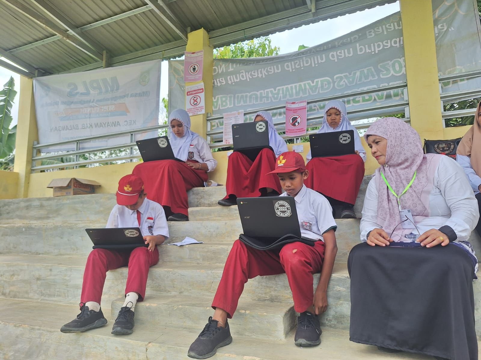 Sejak pukul 07.30 WITA, para siswa sudah berkumpul di area tribun. Lokasi ini dipilih karena letaknya yang lebih terbuka dan tinggi dibandingkan bangunan sekolah, sehingga dianggap sebagai terbaik untuk menangkap sinyal 4G yang kerap timbul tenggelam.