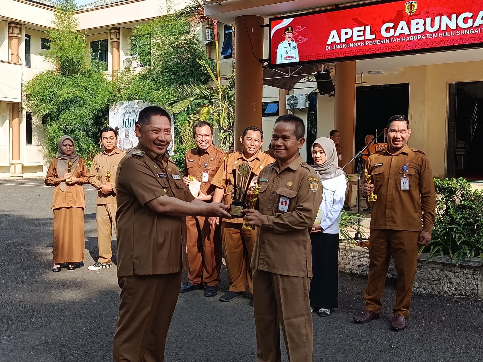 Barabai, ( KATAKUNCI ) – Apel gabungan perdana pasca Lebaran di Kabupaten Hulu Sungai Tengah (HST) dirangkaikan dengan momen halal bihalal, penyerahan penghargaan inovasi, dan penghormatan bagi ASN yang memasuki masa purna tugas.