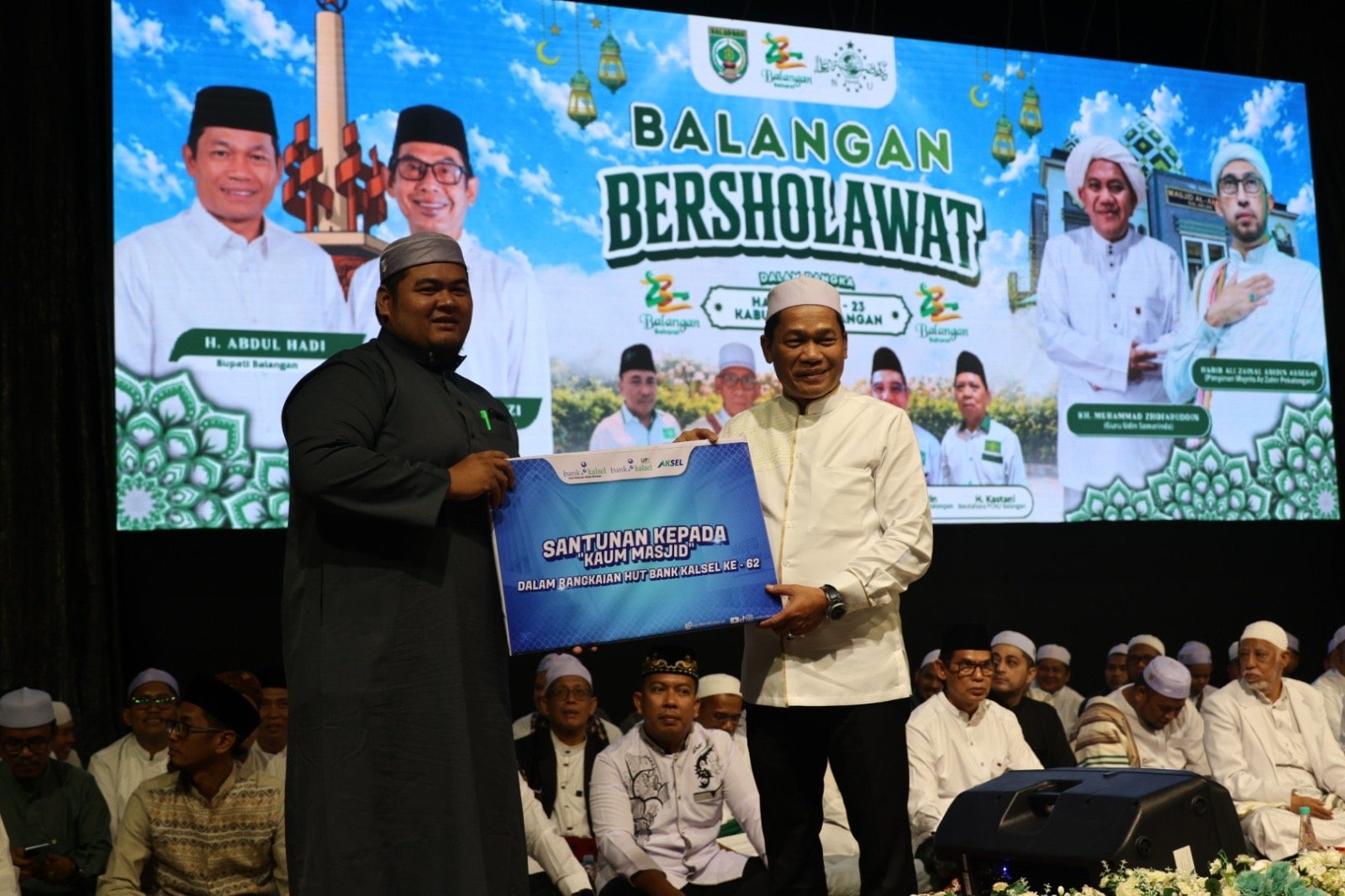 Sejumlah kaum masjid hingga panti asuhan di Balangan mendapatkan santunan dari Bank Kalimantan Selatan (Kalsel) saat kegiatan Balangan Bersholawat dalam rangkaian acara Hari Ulang Tahun (HUT) ke-23 kabupaten setempat di area perkantoran Tugu Maritam.