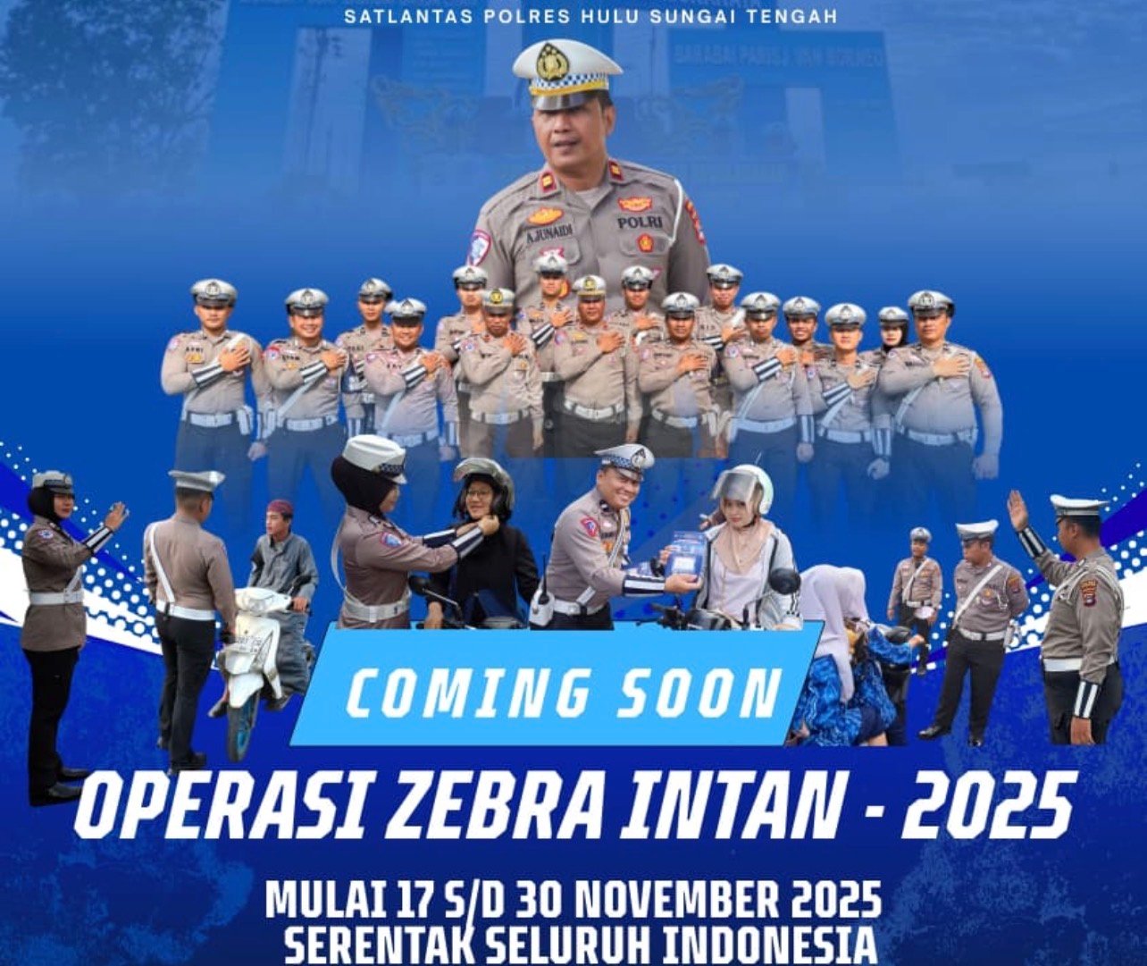 Barabai (KATAKUNCI) – Satuan Lalu Lintas (Satlantas) Polres Hulu Sungai Tengah (HST) siap menggelar Operasi Zebra Intan 2025, serentak di seluruh Indonesia mulai 17 hingga 30 November 2025 demi mewujudkan lalu lintas yang aman dan tertib.