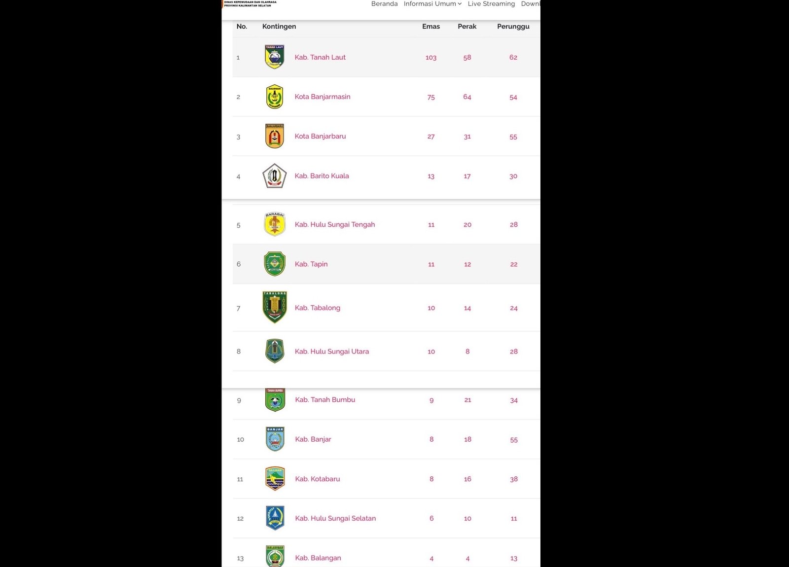 Pelaihari (KATAKUNCI) – Kinerja panitia penyelenggara Pekan Olahraga Provinsi (Porprov) XII tahun 2025 Kalimantan Selatan di Kabupaten Tanah Laut menuai sorotan, sejumlah kontingen mengeluhkan lambatnya pembaruan data perolehan medali yang ditampilkan pada situs resmi atau pusat informasi panitia.