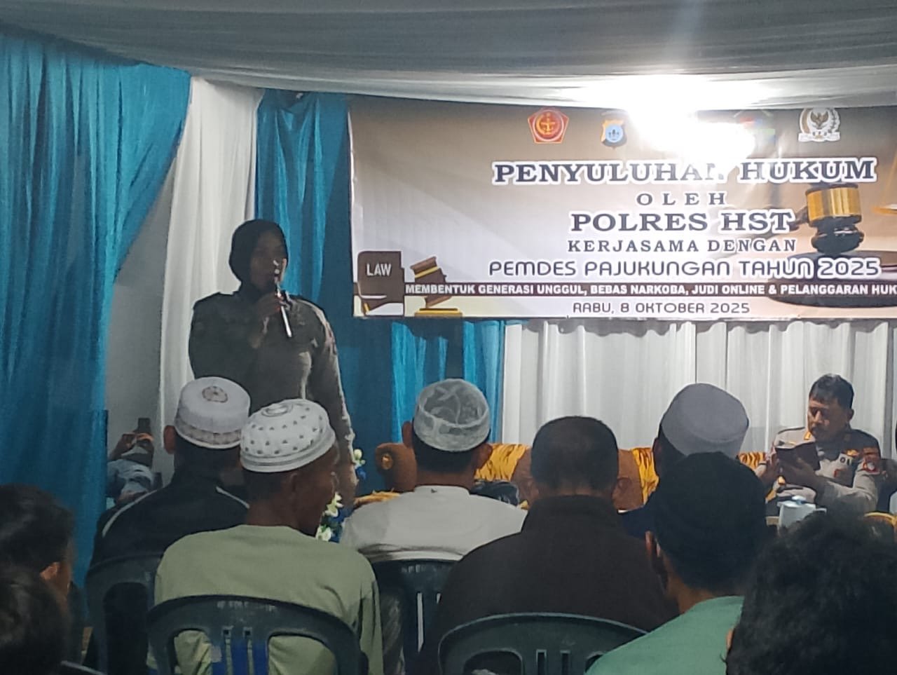 Sementara Pembakal Desa Pajukungan Soparyono, menyampaikan apresiasi atas sinergi yang terjalin bersama Polres HST dengan tujuan kegiatan yaitu untuk pemahaman hukum khususnya remaja tentang perundungan, penyalahgunaan narkoba, judi online, dan pelanggaran hukum lainnya.