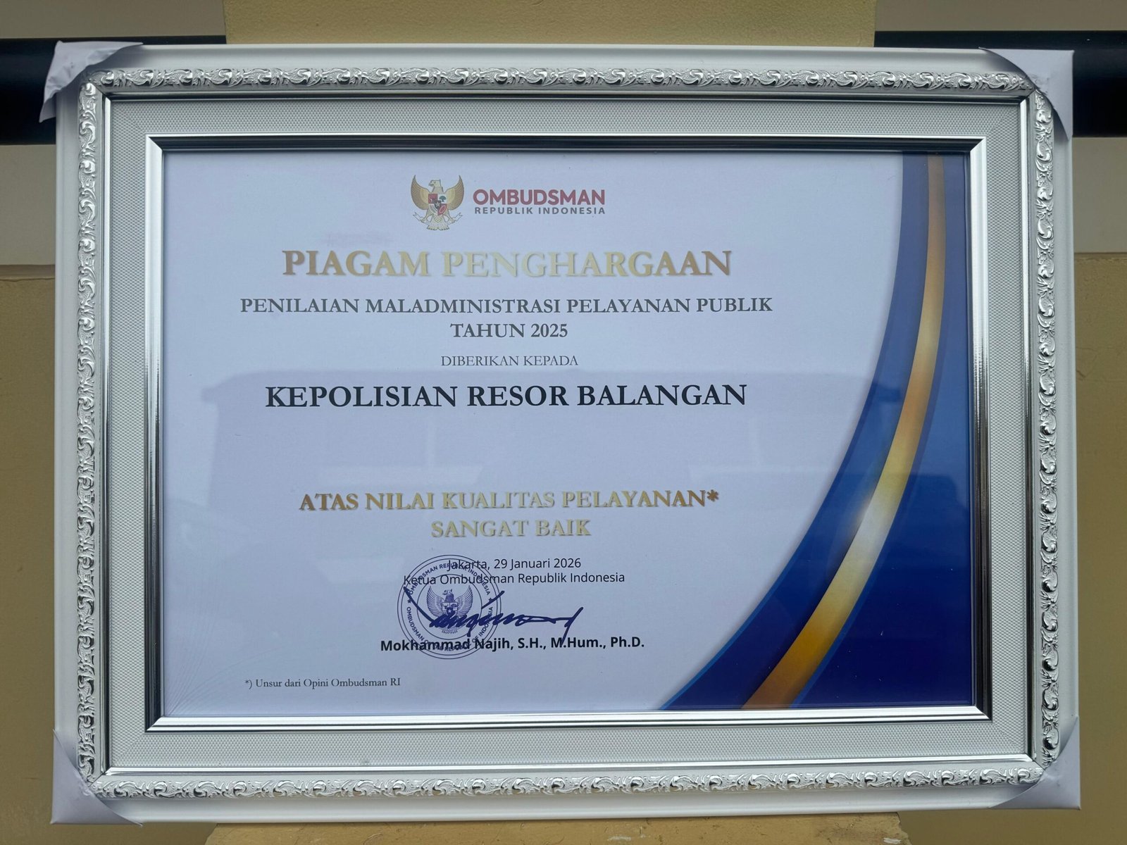 Pencapaian ini menjadi sinyal kuat bahwa Polres Balangan sangat serius dalam menghapus praktik maladministrasi serta terus mengedepankan pelayanan yang transparan dan akuntabel.
