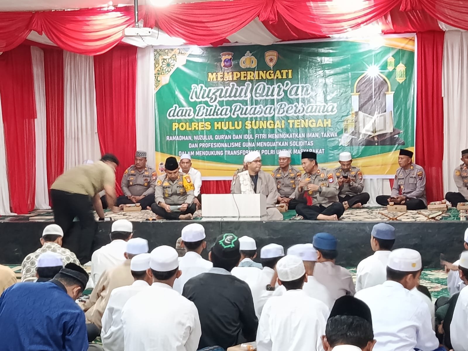 Kegiatan berlangsung di Aula Bhayangkara Polres HST pada Kamis (12/3/2026), di tengah suasana khidmat dan penuh berkah menjelang akhir sore. Acara yang dihadiri oleh personel polisi, pengurus panti, serta Pimpinan Pondok Pesantren Raudhatul Ulum KH. M. Asrsyad, menjadi ajang silaturahmi dan penguatan nilai-nilai agama.