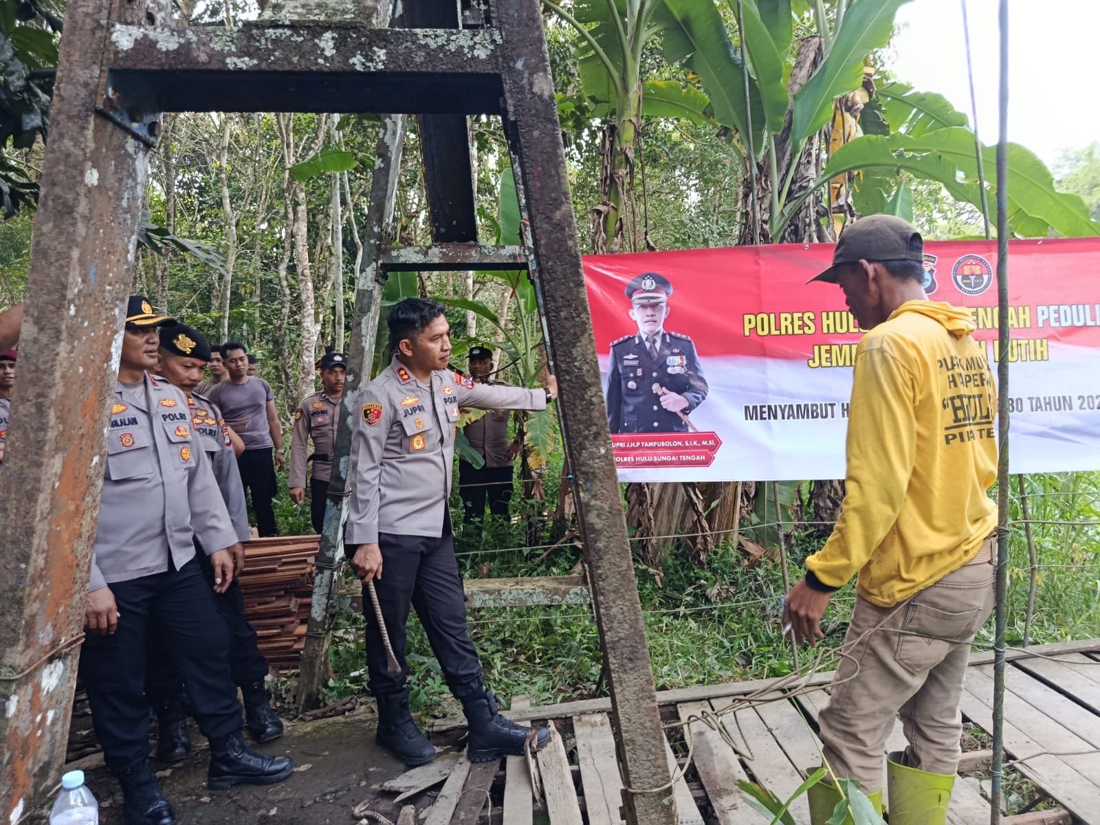 Barabai (KATAKUNCI) – Polres Hulu Sungai Tengah (HST) melaksanakan renovasi Jembatan Merah Putih sebagai bentuk bakti sosial dalam rangka memperingati Hari Bhayangkara ke-80.