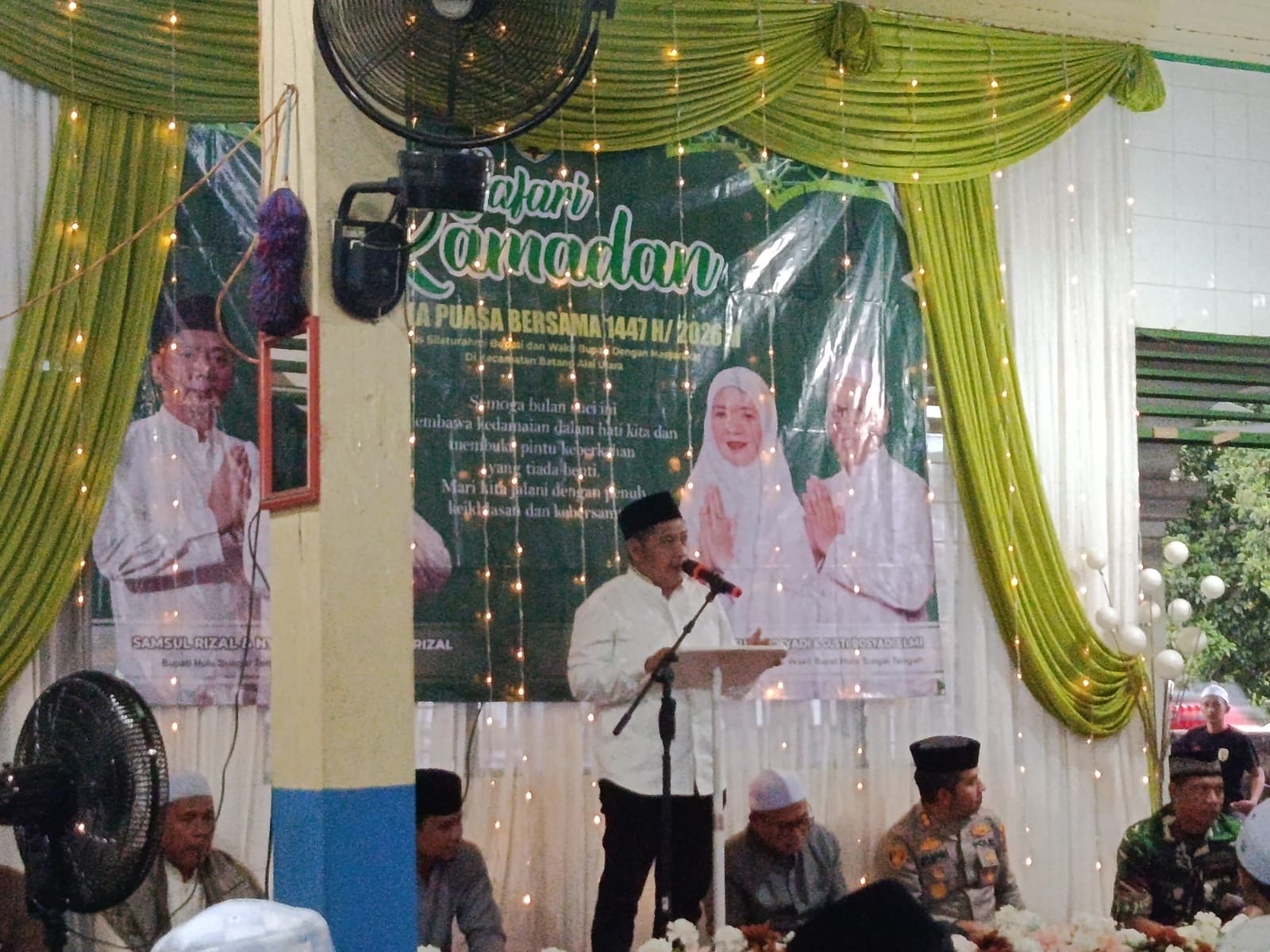 Bupati HST Samsul Rizal mengucapkan salam Ramadhan 1447 H kepada seluruh hadirin. “Safari Ramadhan ini merupakan kegiatan rutin tahunan yang dilaksanakan oleh Pemerintah Daerah untuk hadir lebih dekat dengan masyarakat dan melihat langsung situasi kondisi di seluruh wilayah kecamatan se-Kabupaten Hulu Sungai Tengah,” ujarnya. Ia berharap kegiatan ini dapat membangun komunikasi harmonis dan semangat kebersamaan dalam membangun daerah yang religius dan sejahtera.