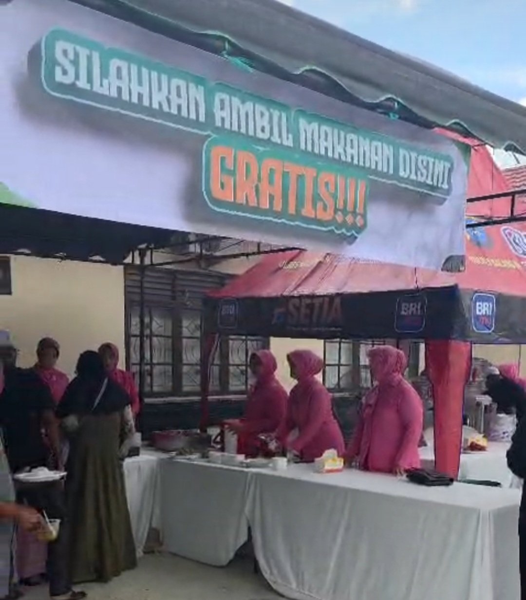 Berdasarkan pantauan di lokasi, Polres Balangan menyediakan tenda besar dengan spanduk bertuliskan “Silahkan Ambil Makanan di Sini, GRATIS!!!”. Puluhan meja bundar dengan kursi tertata rapi, layaknya jamuan pesta, disediakan bagi jemaah untuk beristirahat.