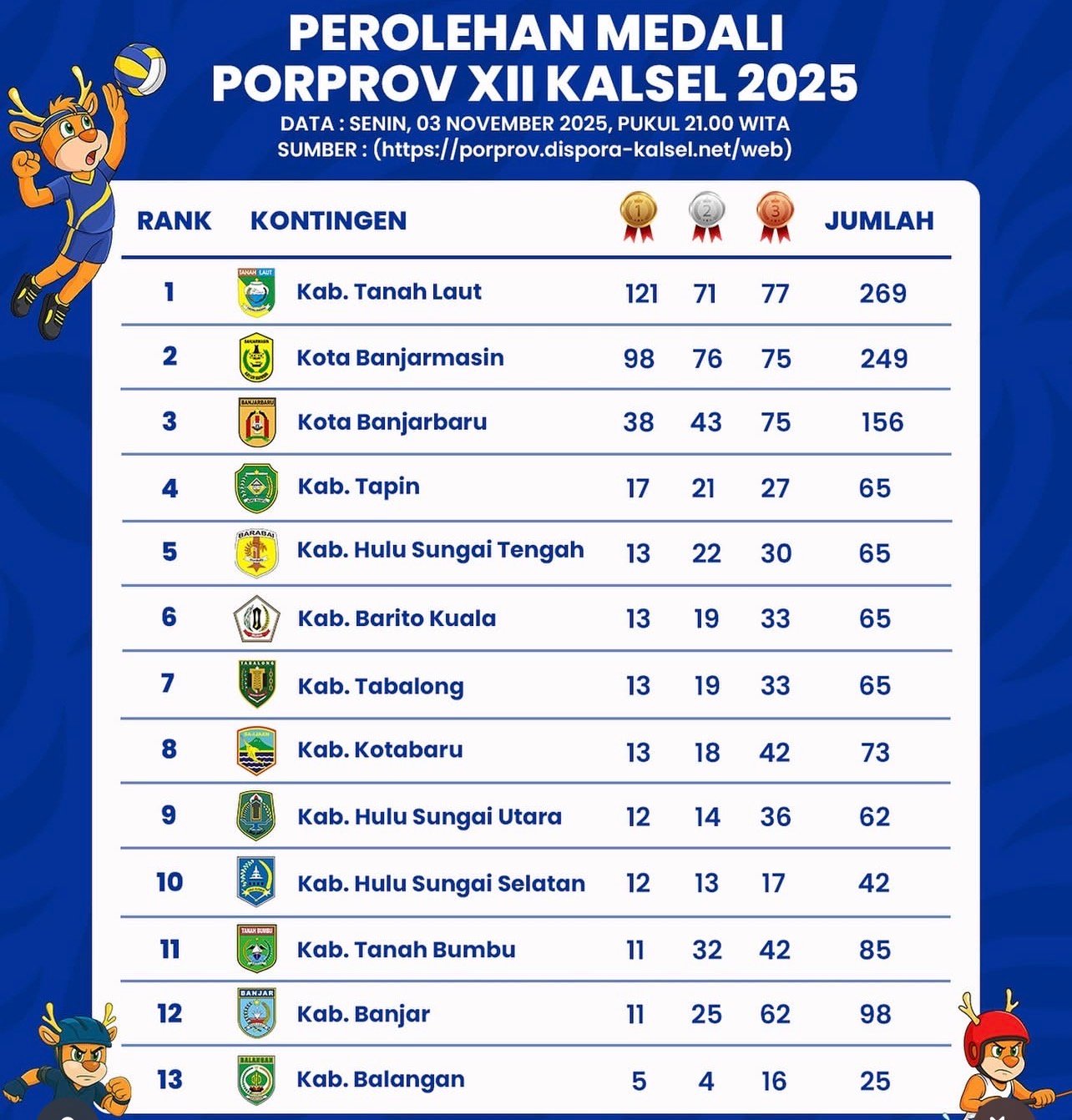 Pelaihari (KATAKUNCI) – Tim Information Technology (IT) Porprov XII Kalimantan Selatan menyebutkan panitia cabang olahraga (Cabor) lambat dalam menyerahkan berita acara untuk memperbarui perolehan medali.