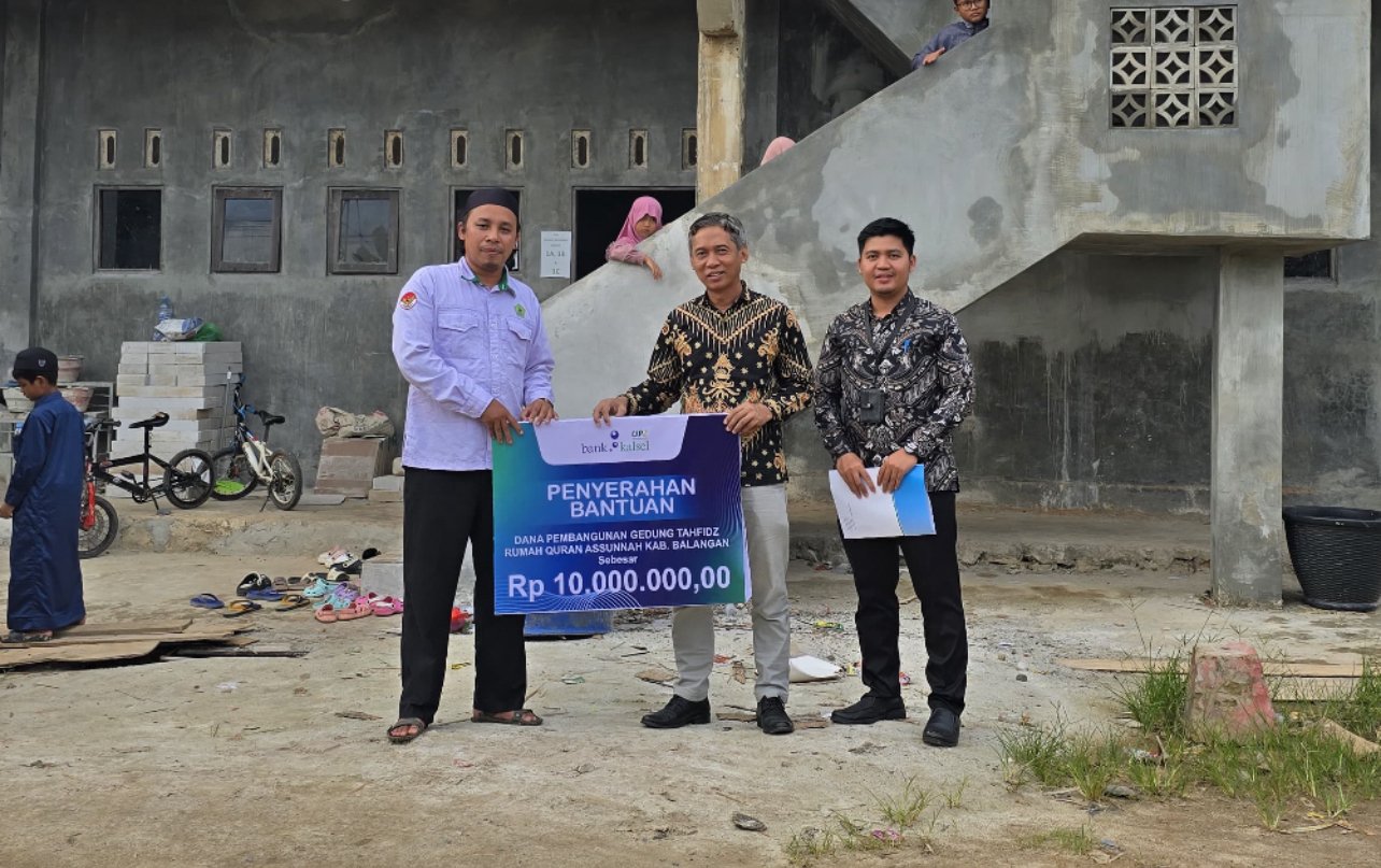 Balangan (KATAKUNCI) – Unit Pengelola Zakat (UPZ) Bank Kalsel membantu proses pembangunan gedung Tahfidz Qur’an Assunah sebesar Rp10.00.000 yang terletak di Perumahan Cahaya Muhibbin RT.18 Kelurahan Paringin Kota, Kabupaten Balangan.